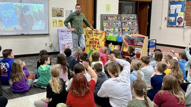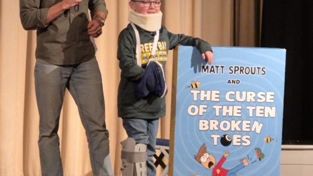 Eicheldinger explains how his real life experiences inspired his book "Matt Sprouts and The Curse of The Ten Broken Toes". Photo courtesy Megan Brouwer.